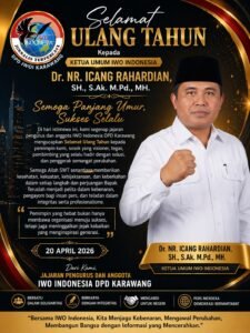 KARAWANG – Suasana penuh rasa hormat dan kebanggaan menyelimuti jajaran pengurus serta anggota Ikatan Wartawan Online Indonesia (IWOI) Dewan Pimpinan Daerah (DPD) Kabupaten Karawang dalam momentum peringatan hari ulang tahun Ketua Umum IWO Indonesia, Dr. NR. Icang Rahardian, SH., S.Ak., M.Pd., MH, yang jatuh pada 20 April 2026.