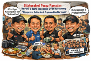 Karawang, 23 Maret 2026 — Seluruh anggota Koordinator Wilayah (Korwil) 5 Ikatan Wartawan Online (IWO) Indonesia Dewan Pimpinan Daerah (DPD) Karawang menggelar kegiatan silaturahmi pasca-Ramadan pada Senin (23/3/2026). Kegiatan tersebut berlangsung di Sekretariat Korwil 5, Perumahan Cikampek Berseri, Kecamatan Kotabaru, Kabupaten Karawang.