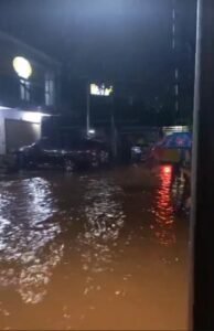 dilaporkan mengalami genangan air dengan ketinggian bervariasi, mulai dari beberapa sentimeter hingga mendekati lutut orang dewasa saat hujan deras mengguyur.